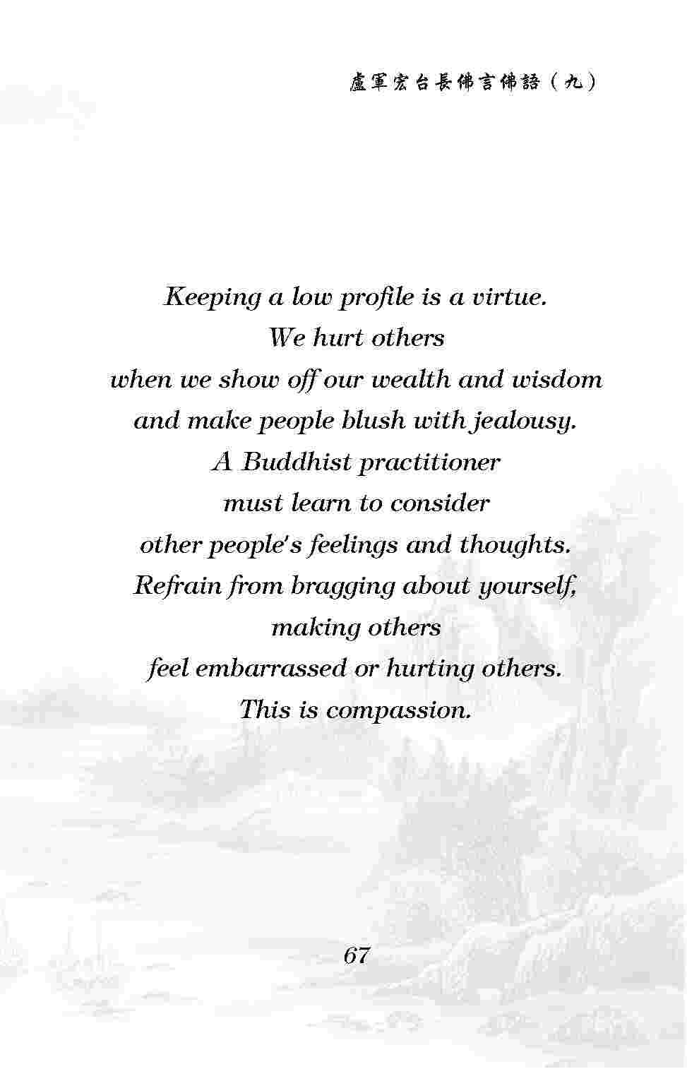 Refrain from bragging about yourself, making others feel embarrassed or hurting others. This is compassion.